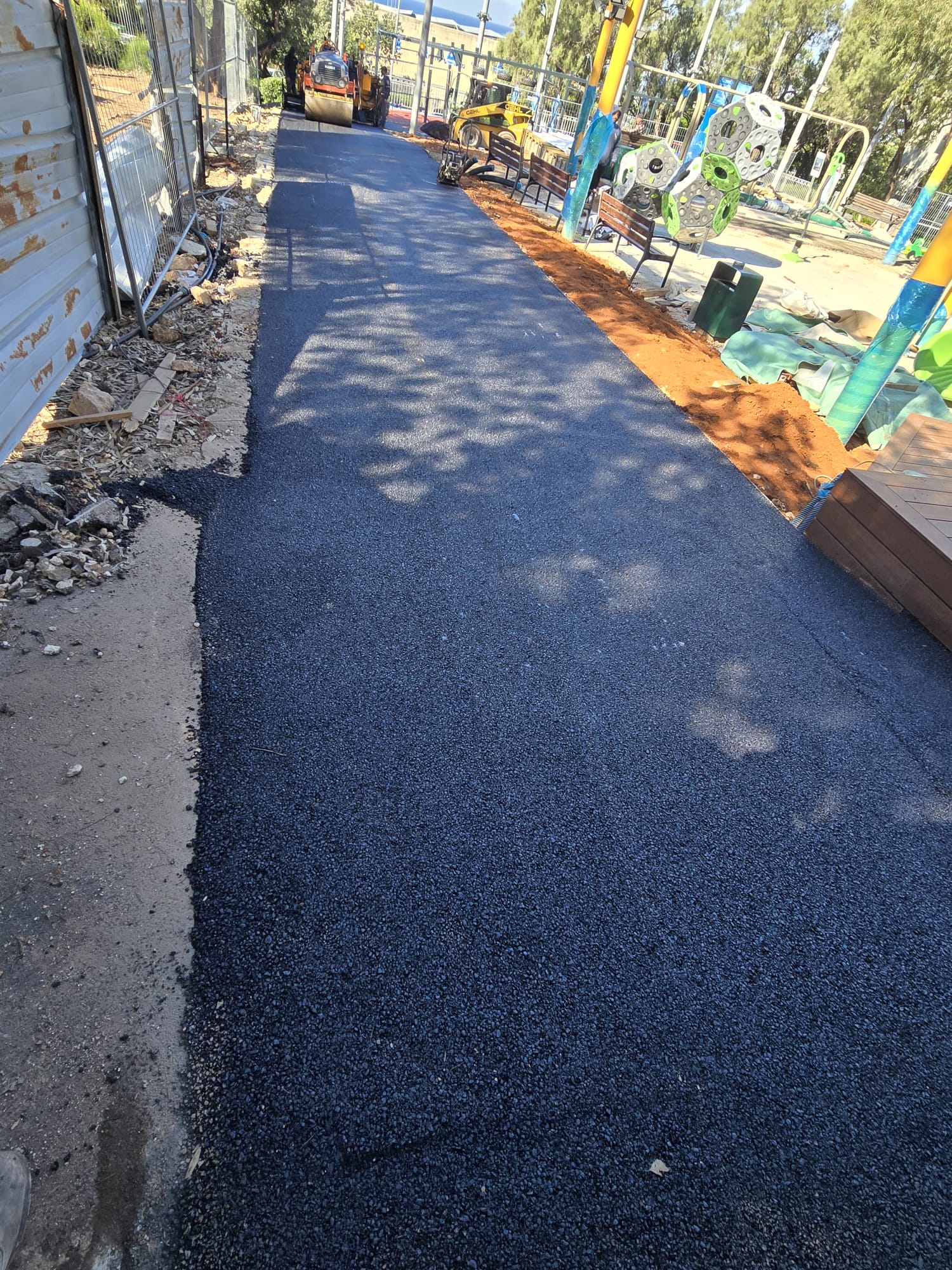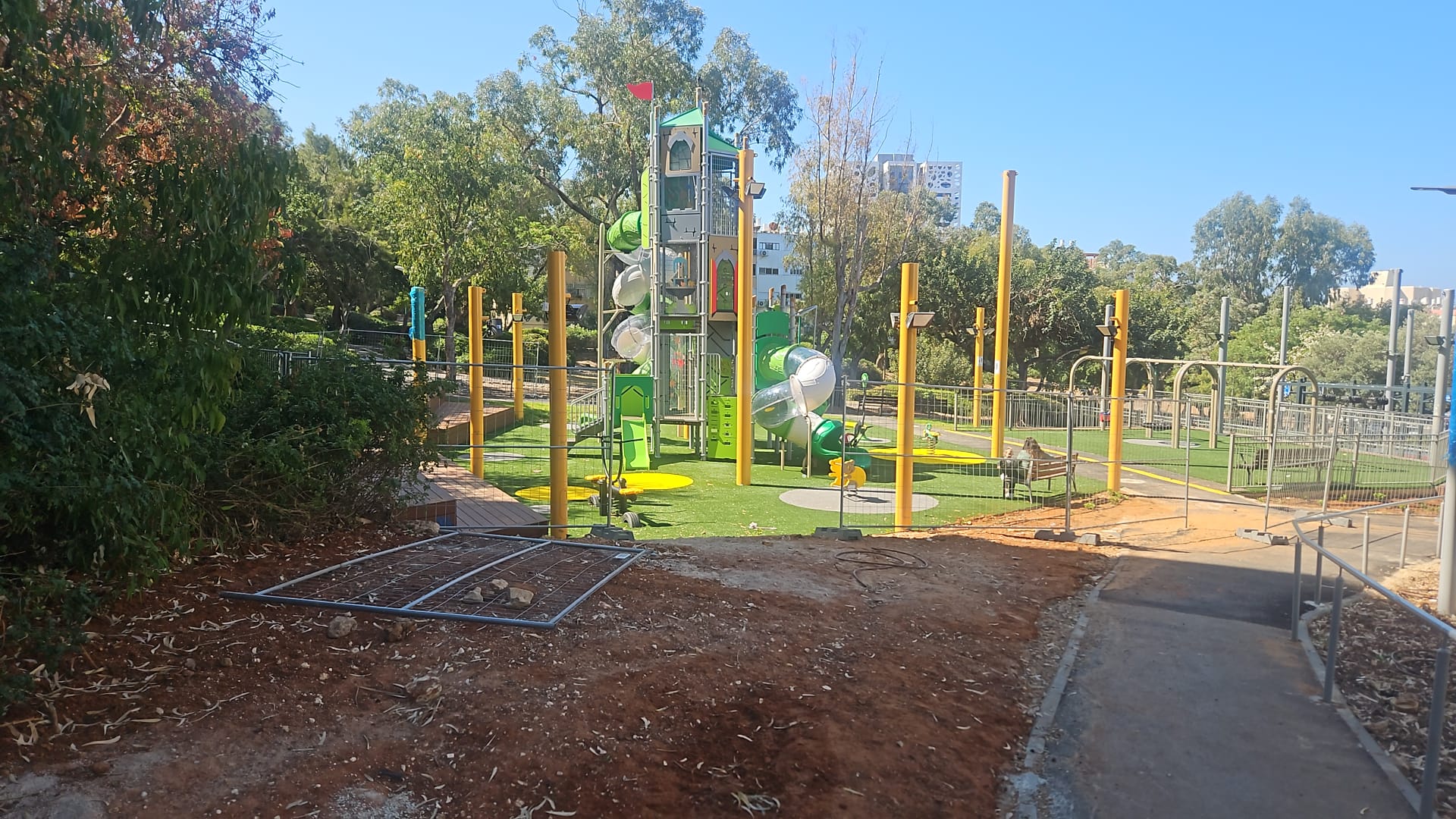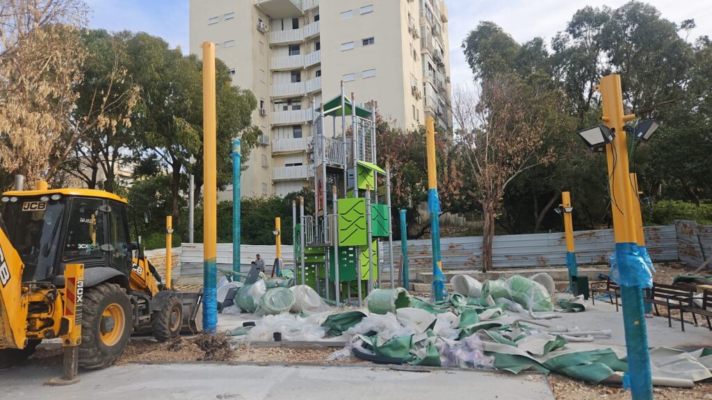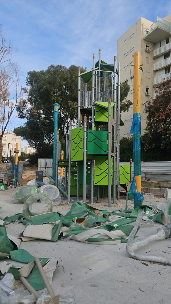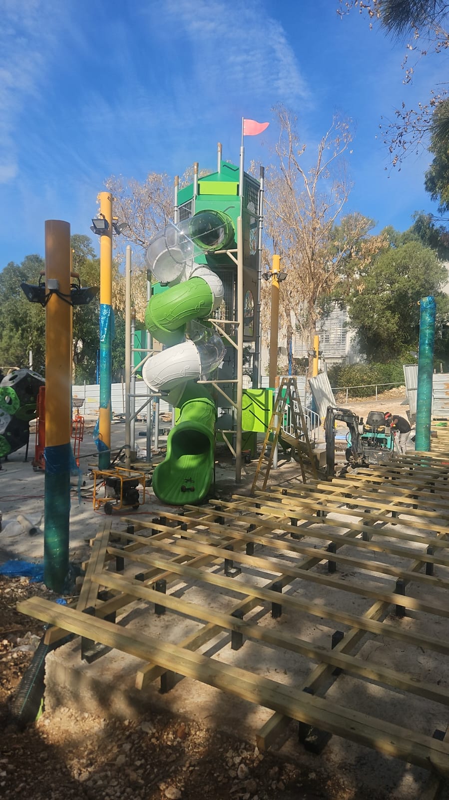 הקמת משחקיה חדשה בגן אלי כהן בחיפה. הפרויקט כלל את אספקת והתקנת מתקני משחק מתקדמים, הקמת טריבונות מעץ דק וכן פריסת דשא סינטטי איכותי עם משטח בטיחות בהתאם לסטנדרטים מקצועיים.